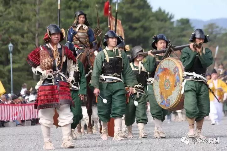 ▲日本京都一年一度的“时代祭”游行中表现平安时代讨伐虾夷人的官军,服装铠甲都是参考考古资料的,所以是比较真实的反应坂上田村麻吕时代的日本军队特色的