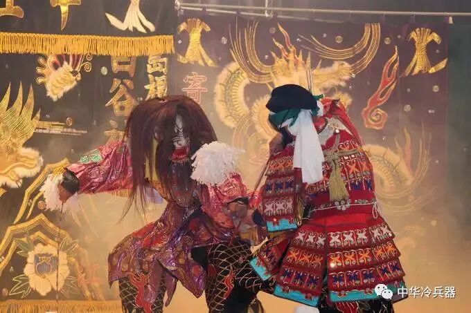 ▲神乐中的坂上田村麻吕率兵打虾夷,虾夷人也同样被丑化为妖魔鬼怪