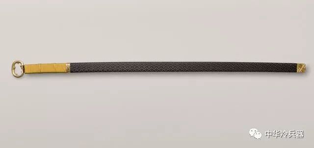 鞘室木质裹绢,髤黑漆为底,另用螺钿装饰。