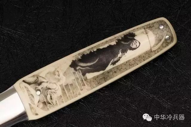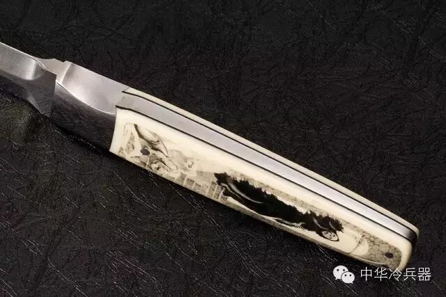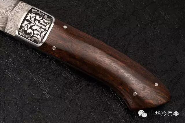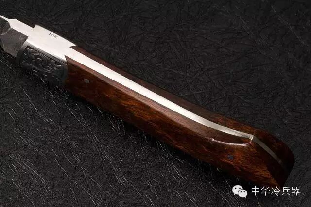 这把全木鞘款式极度少有,刀鞘做工细腻,和手柄选用整截沙漠铁木制成,插在鞘里,鞘柄之间配置着由美国名雕刻师米克沃特手工雕刻的护手,整体看上去好似一件精美的展示品。
