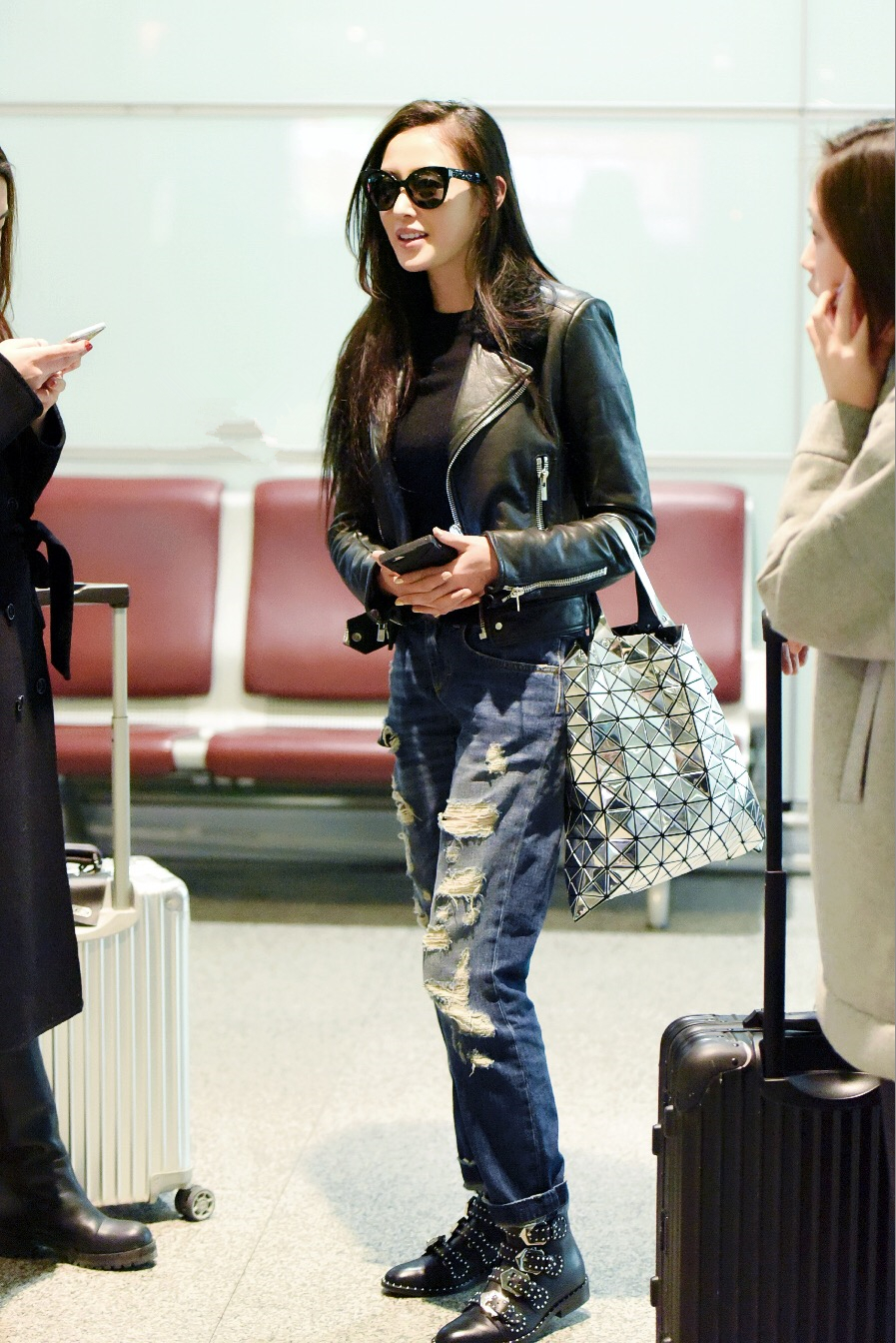 现身机场,一身潮装打扮干练十足,飒爽帅气。随后还有人目击其在机舱单手拿行李,十足女汉子。