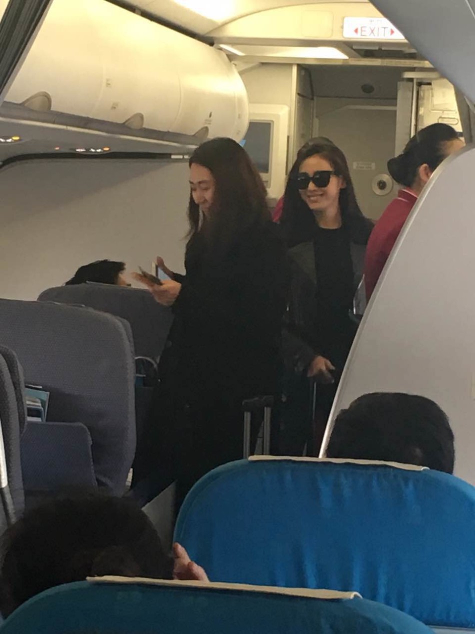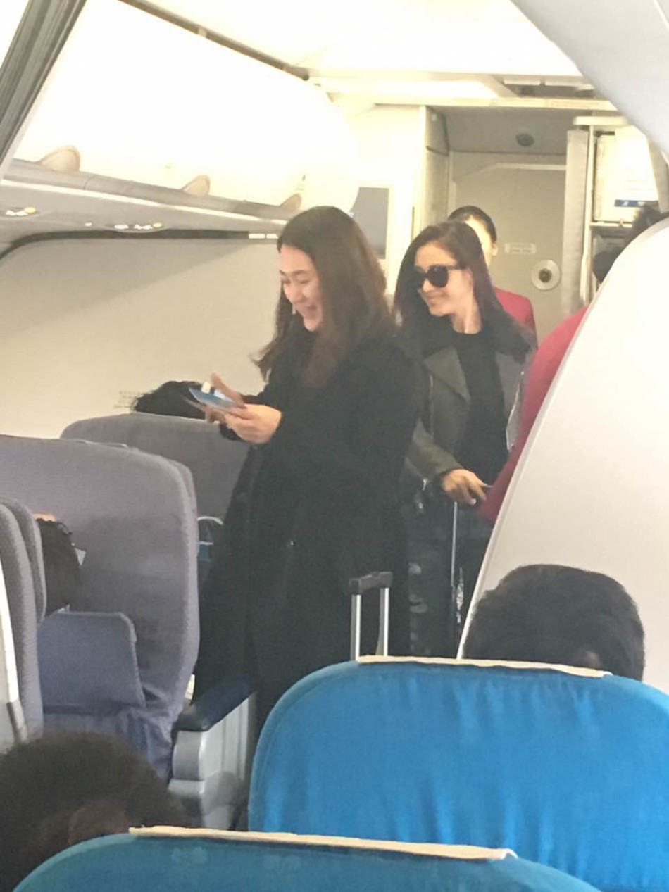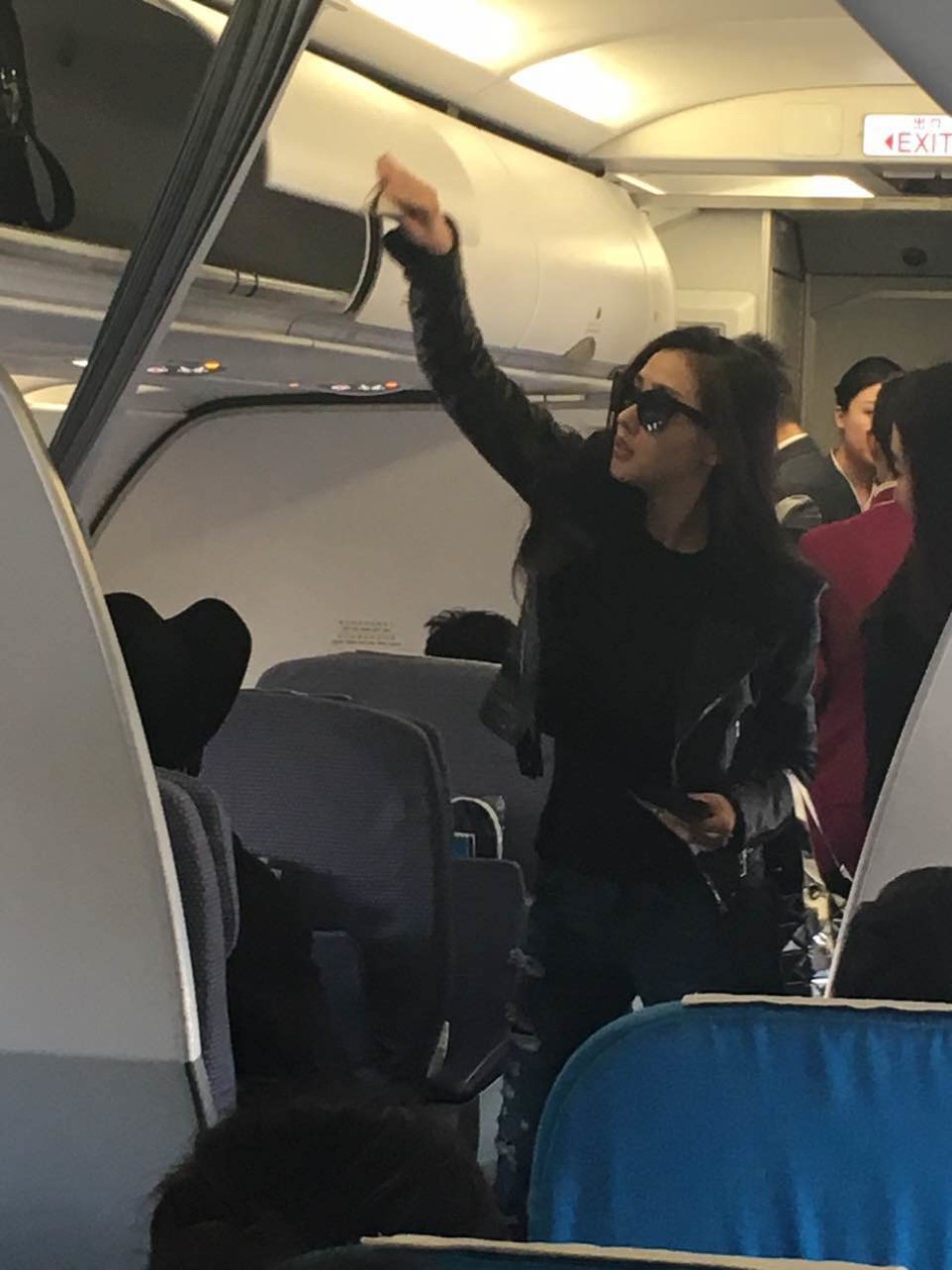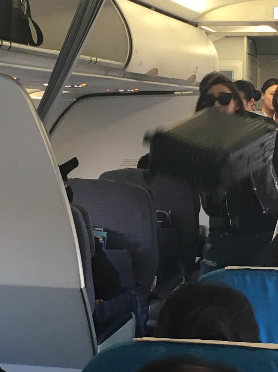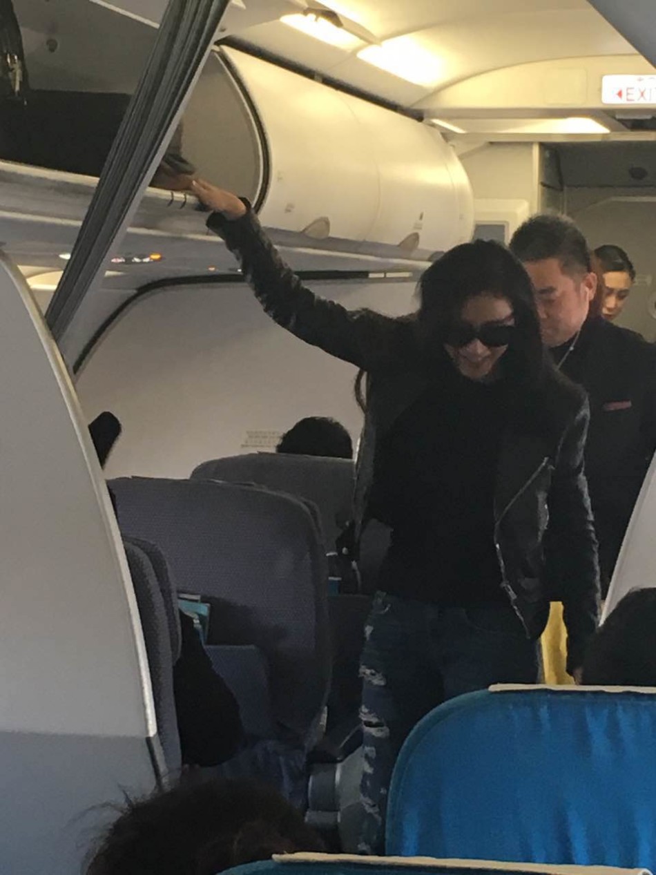张天爱机场街拍干练 机舱内单手拿行李箱