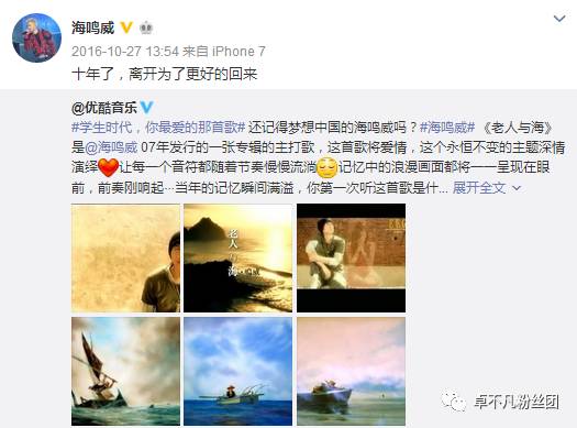 虽然海鸣威的那首《老人与海》可能蹭了热度还算有点影响,但是之后的那几张专辑真的没有什么影响力了,反正小编是没有听过他别的歌