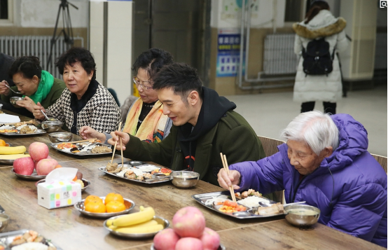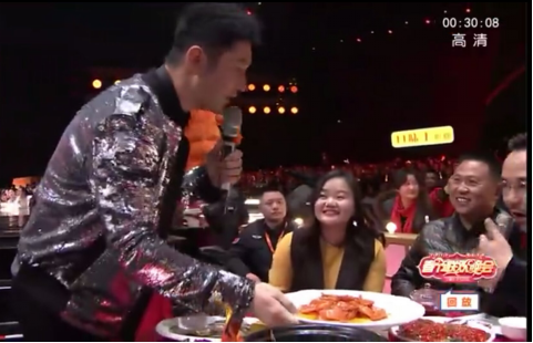 昨晚的芒果小年夜春晚上,黄晓明将自己的拿手菜“茄子大虾”,弯腰端到了为社会事业奉献的志愿者们面前,为这群可爱的人送去自己最贴心的祝福。