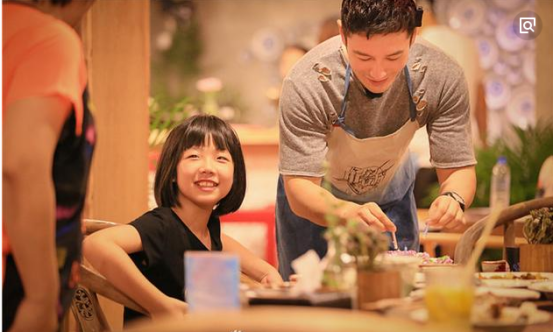 不仅如此,走下霸道总裁神坛化身暖心服务生的黄晓明在店里忙前忙后,俨然殷勤谦逊的店小二,对待店里的儿童顾客也尤为细心。