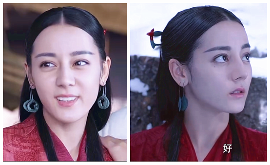 在《烈火如歌》里,迪丽热巴少见的采用了“双耳洞”,这样的设置,意外地符合热巴异域少女风格的长相,配合服装和头饰变化,也让人物形象更加灵动。