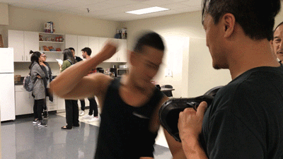 看电影的幕后花絮,练打戏的时候一拳一拳死命打在陪练的手靶上,那认真劲,隔着屏幕小编都感受得到。