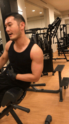 更牛的是健腹轮的训练,双手板带高抬腿的体式,只是看着都觉得难度非常!小编只能甘拜下风,偏偏黄晓明还做得相当标准呢,看来,黄晓明也是被演员耽误了的健身教练呀!