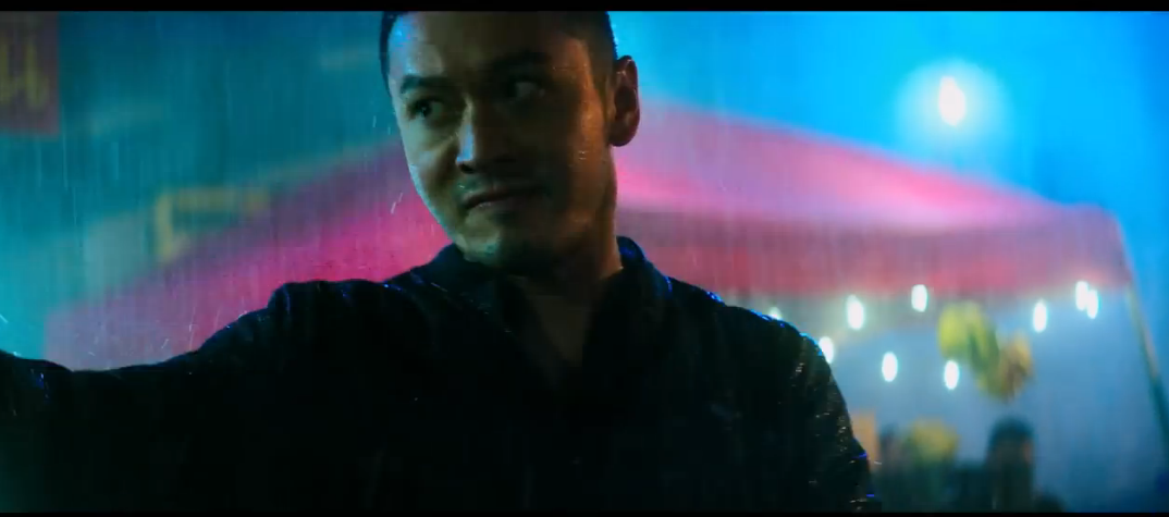 电影一开始在下着暴雨的夜市中,黄晓明遭到了面具人的袭击,功夫了得的他使出了唯快不破的咏春拳,一招一式,拳拳到肉,打得对方毫无还手之力,干净利落的动作可谓爽快之极,再配上他一回头那坚定的眼神,简直不要太撩,好嘛!