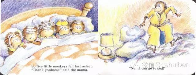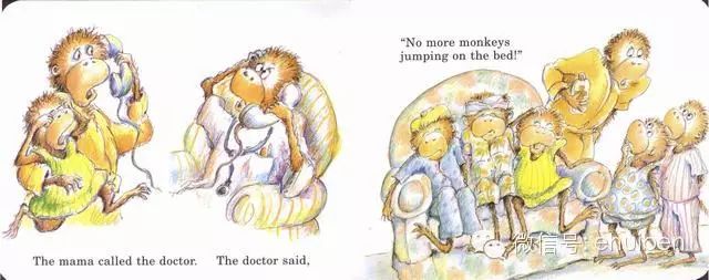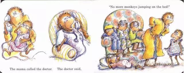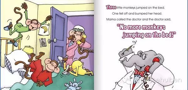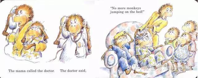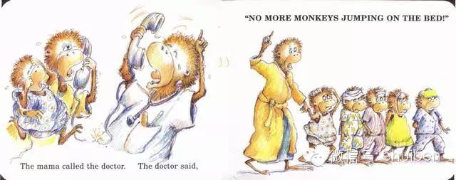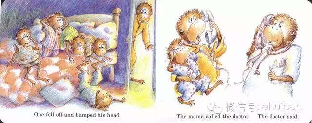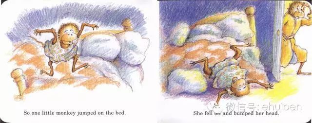 《Five Little Monkeys Jumping on The Bed》是一本很欢快,很有趣的绘本。5个调皮捣蛋的小猴子,热衷于在床上蹦蹦跳跳,然后一个一个的掉床下了,妈妈每次都call the doctor。