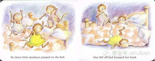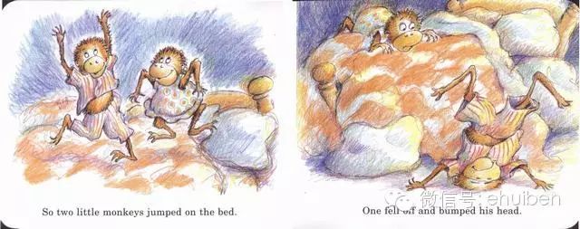 小孩很欢快的学会了"jump on the bed"了吧,但是他们会怕"fall off and pump his head"吗?那样会很痛,要“call the doctor”哦,估计有不少捣蛋小鬼都不怕吧。