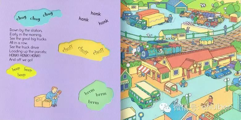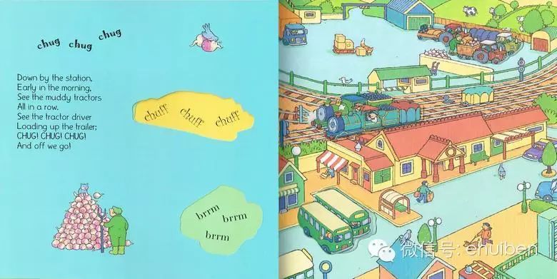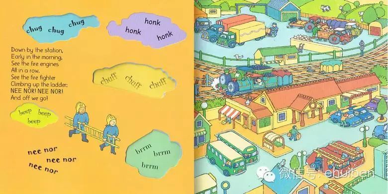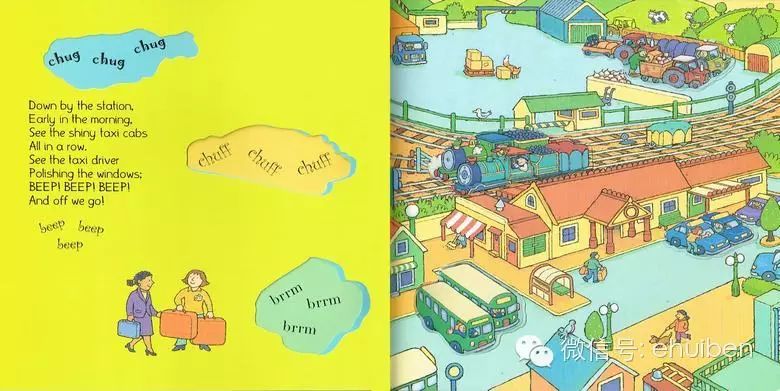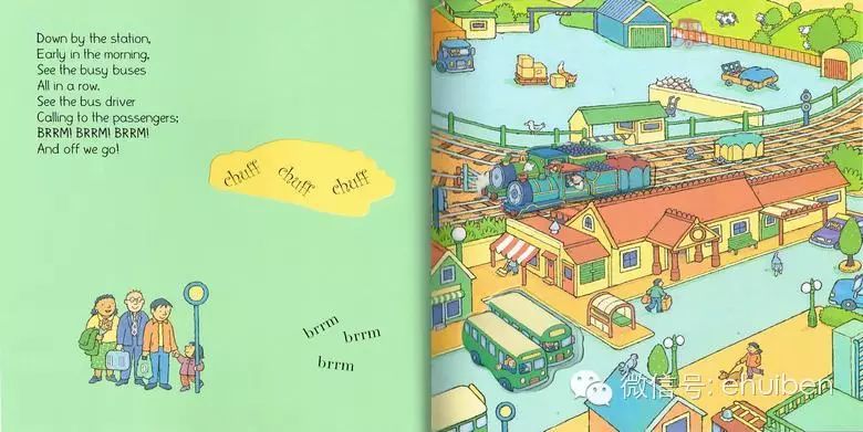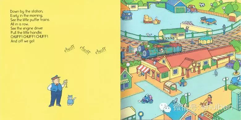 但是大部分爸妈的英语水平有限,不能够详细的用英语与小孩共读绘本的话。可以试一下下面的简单方法,就用今天要说的《Down by the Station》做例子了。