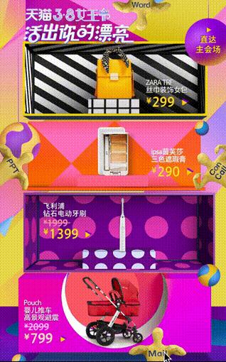 在这次女神节,天猫将自己的注意力集中到一些中产女性消费群体。整体来讲,目前天猫所呈现出来的一切都切合这次“天猫3.8女王节”的传播主题——活出你的漂亮。天猫的动作一波接着一波,推出300个尖货榜单,集结3万余个大牌上新,以AR互动的方式进行权益礼包的发放。