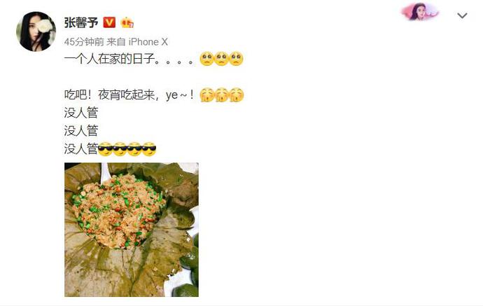 虽然吃夜宵的时候,张馨予连续用了3个“没人管表面上看起来很开心,不过此时内心估计更希望老公在身边管她一下吧,想想真的挺不容易的。