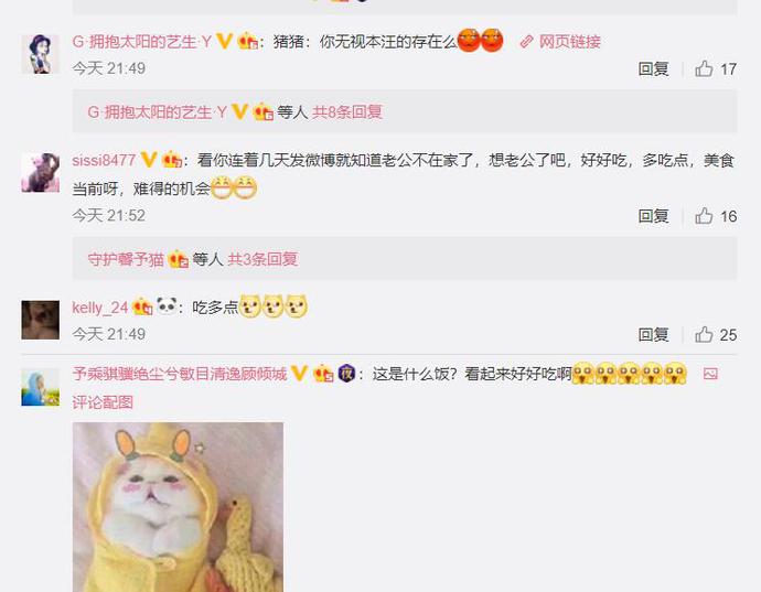 也有网友调侃道:“看你连着几天发微博就知道老公不在家了,想老公了吧,好好吃,多吃点,美食当前呀,难得的机会”