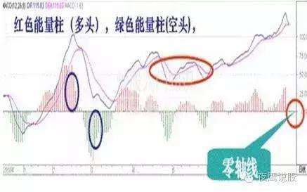三、两柱:柱线实际是短长均线差值的两倍,是多空力道的体现。柱线长代表短线的涨跌动能大,红色能量柱指短均线高于长均线,绿柱反之。当突然出现没有线柱时是变盘信号之一。