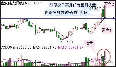 一、涨停板回踩买入法:涨停突破阻力回踩买入法