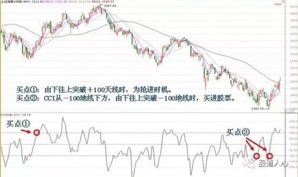 当CCI指标线突破-100时,表示市场已经进入了超买状态,但短期投资者情绪已经被调动起来,此时可以买入。