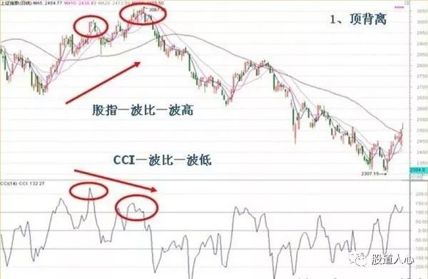 但是,如果股价再度向上并超越前期高点创出新的高点时,而CCI曲线随着股价上扬也反身向上但没有冲过前期高点就开始回 落,这就形成CCI指标的顶背离。CCI指标出现顶背离后,股价见顶回落的可能性较大,是比较强烈的卖出信号。