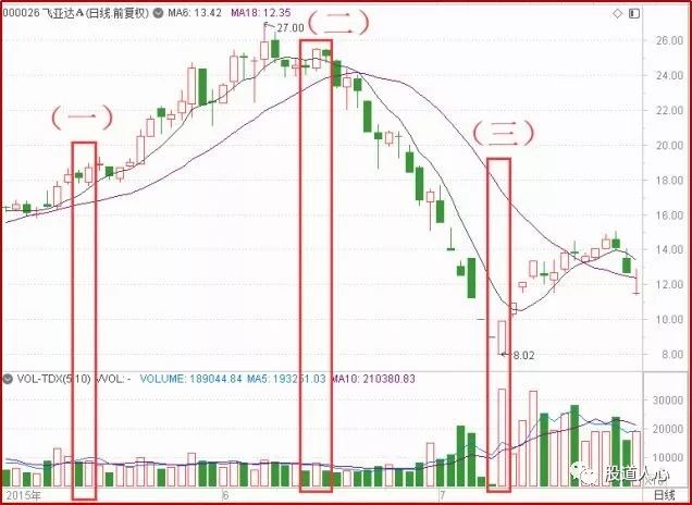 上面是飞亚达2015年6月前后的一段走势。标注(一)是一个阳包阴的走势,随后股价并没有出现孕线的走势,股价继续上涨。标注(二)也是一根阳包阴的走势,但随后的一根K线走势与前面的大阳线又构成了一根孕线,意味着股价出现反转的迹象。