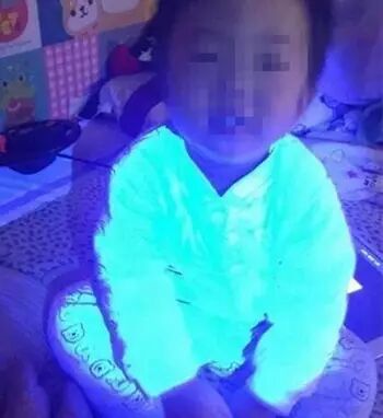 荧光剂,是一种可吸收光线或紫外线而反射蓝白磷光的化学染料,日常生活中会大量用于洗衣粉、清洁剂、纸张、荧光灯等等。现在有很多无良商家,用劣质棉或者回收棉来做织物,为了颜色好看,加入大量荧光剂。所以很多号称纯棉的衣物,是含有荧光剂的。