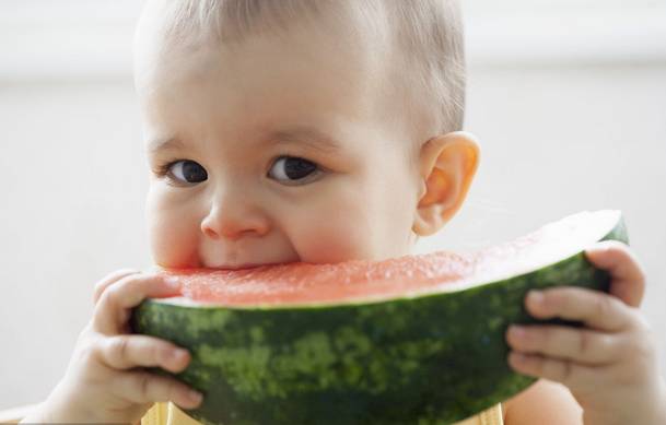 西瓜简直就是夏天的代名词,西瓜甜甜的、很多汁,也很利尿。但我们建议1岁以下的宝宝尽量少吃或不吃,因为小宝宝的肠胃消化功能发育还不完全,吃西瓜可能会出现肠胃功能紊乱,腹泻、频繁尿尿,反而更加重了宝宝的脱水。绿豆汤也如此,加重宝宝胃肠负担,容易造成腹泻。