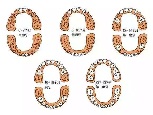 很多宝宝在6个月左右开始出牙,基本到了2岁半(有的宝宝可能出牙晚,会到3岁)出齐20颗乳牙,一般先长下牙再长上牙,左右牙齿对称长出。