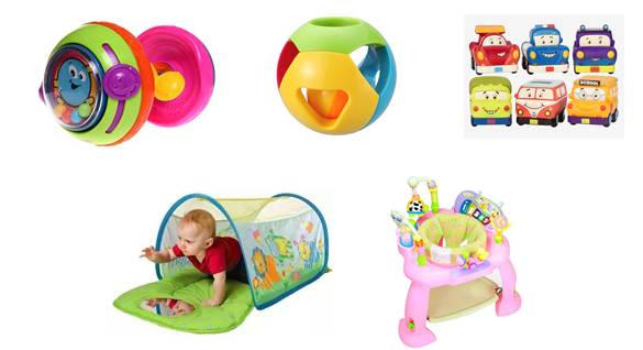 适合玩具:爬行玩具、球、滚动的小车、隧道、蹦跳乐园