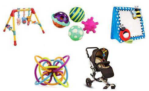 适合玩具:健身架、各类球、带镜子的玩具、牙胶、婴儿车挂