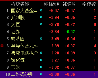 (2)涨跌(震荡小涨): 具体数据:从今天上午的个股数据来看,涨跌幅超2%的对比是642比276家,符合小涨的特征,说明今天是局部热点行情,大金融和硬核芯片股。