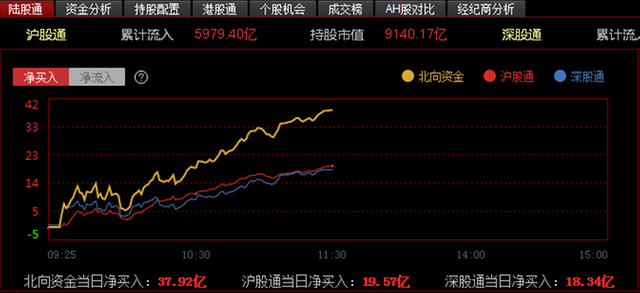 (3)外资:外资今日是净流入的,沪市:净流入19.57亿,深市:净流入18.34亿,两市合计净流入37.92亿,昨天外资净流入了200多亿,外资的净流入和净流出对股市明显的影响作用,因为很多人把外资当做聪明资金,在抄底和逃顶时都会参考!