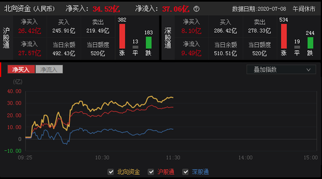 (3)外资:外资净买入沪市26.42亿,净买入深市8.1亿,两市合计净流入34.52亿;外资昨天成交总额达近2000亿,外资的净流入和净流出对股市明显的影响作用,因为很多人把外资当做聪明资金,在抄底和逃顶时都会参考!