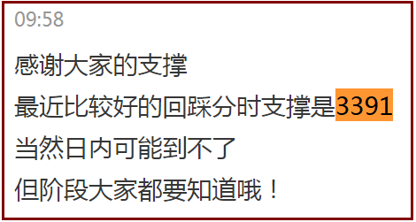 这是早上9:58分独倾计算的日内支撑,结果大盘上午最低点是3390点,然后反弹!