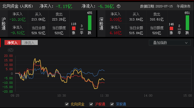 (3)外资:外资净买入沪市-10.2亿,净买入深市3.03亿,两市合计净流入-7.17亿,外资的净流入和净流出对股市明显的影响作用,因为很多人把外资当做聪明资金,在抄底和逃顶时都会参考!外资昨天大幅流出,今天流出趋缓!
