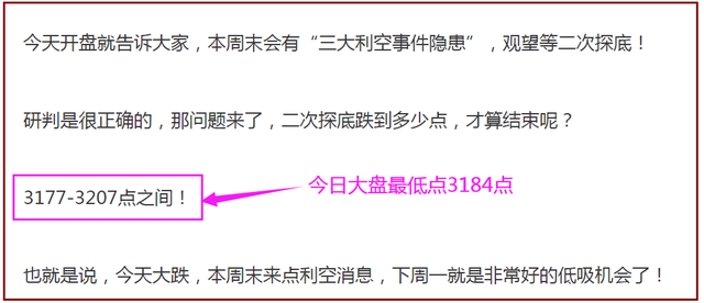 上图是今天中午的午间股评内容,给大家公布了二次探底的支撑,结果大盘跌至3184点的时候,开始了反弹,说明还是有资金认可独倾的计算点位。