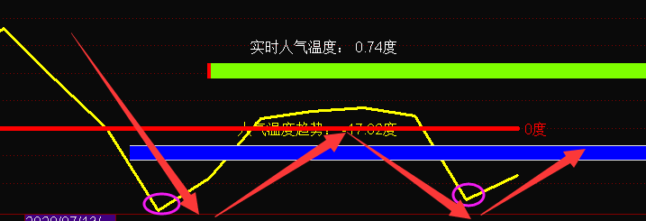 人气温度趋势线,-17度;人气温度趋势线雏形,今天形成了!当然,上穿0度的那一天,才是真正的反弹开启!