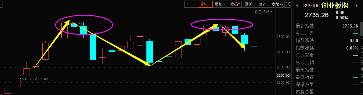 创业板则是向下变盘了,目前形成一个典型的双头走势,但创业板会持续大跌吗?独倾认为不会,有重大政策护航,创指回踩到2626点附近就是短线大机会!