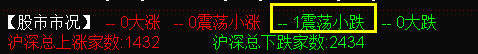 股市市况:震荡小跌(上个交易日是大跌);具体数据:涨跌停对比62比30家,此数据并不好,说明涨停梯队的资金有点受伤;涨跌幅超5%的对比是171比237家,涨跌幅超2%的对比是546比1182家,数据比昨天好了很多,对亏了港股的大涨,给了A股人气;不过还是属于小型普跌行情!