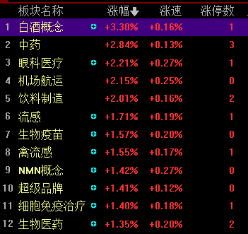 领涨热点:医药、酿酒、券商等;
