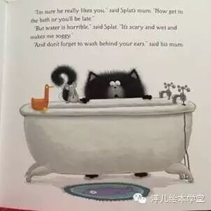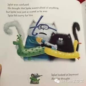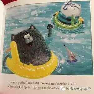 啪嗒猫Splat the Cat是一只刚上幼儿园的小黑猫,所以啪嗒猫Splat the Cat这系列基本都在讲啪嗒猫Splat the Cat的学校生活。那啪嗒猫Splat the Cat是只什么样的小猫呢,他胆小娇气不爱洗澡还鬼灵精怪的调皮(注意看啪嗒猫Splat the Cat的尾巴、浑身毛发的变化以及眼睛、嘴和whiskers的变化),偶然也很勇敢;他一只老鼠好朋友,这俩整天基本形影不离,所以,在给孩子读啪嗒猫Splat the Cat这系列的时候,不妨让孩子在画面中找Seymour这只小老鼠的身影。在很多书里面也能发现这只rubber duckie的身影。另外,啪嗒猫Splat the Cat还很喜欢鱼,看他的很多生活用品都是鱼的形状。
