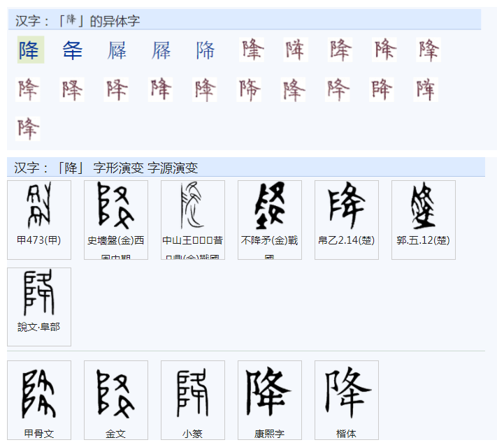 阜、夅两范式叠加:相承不敢竝犹往下坠落者是降字之范式。