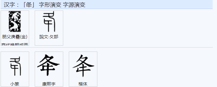 《说文解字》:“夅,服也。从夂、午,相承不敢竝也。”。