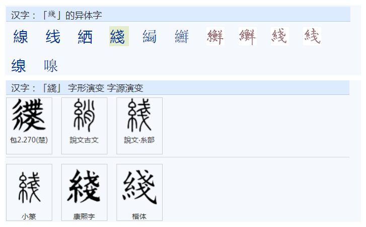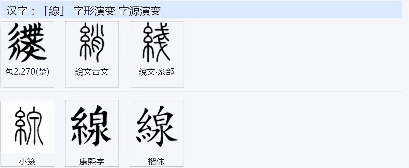 《说文解字》:“綫,缕也。从糸、戔声。線,古文綫。”。