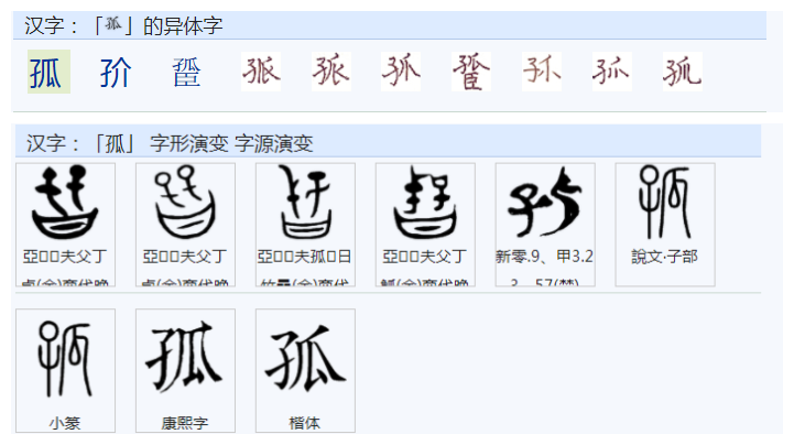 《说文解字》:“孤,无父也。从子、瓜声。”。