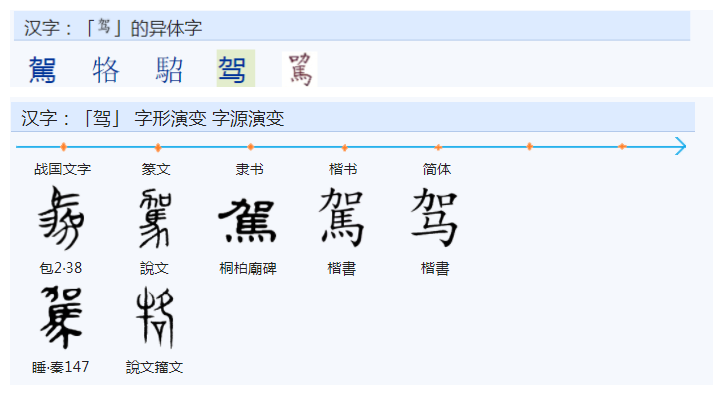 繁体字“駕”简化为“驾”是根据古人(异体字、同旁字)书法省笔规范简化。