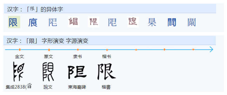 阜、艮两范式叠加:山若门榍不相下并欲与之较真犹临界极险以相阻者是限字之范式。