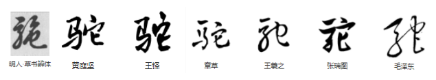 繁体字“駝”简化为“驼”是根据古人(异体字、同旁字)书法省笔规范简化。