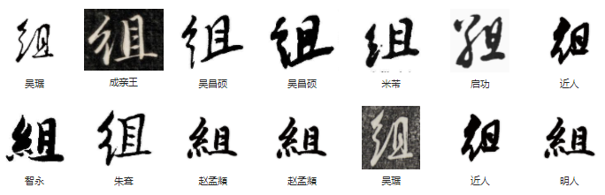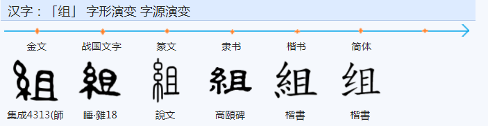 繁体字“組”简化为“组”是根据古人(异体字、同旁字)书法省笔规范简化。