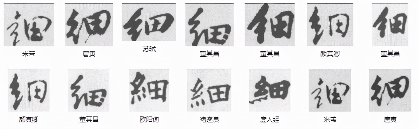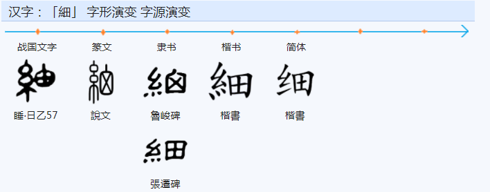 繁体字“細”简化为“细”是根据古人(异体字、同旁字)书法省笔规范简化。