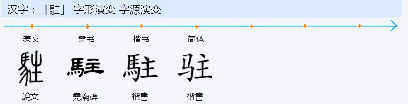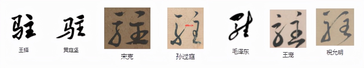 繁体字“駐”简化为“驻”是根据古人(异体字、同旁字)书法省笔规范简化。